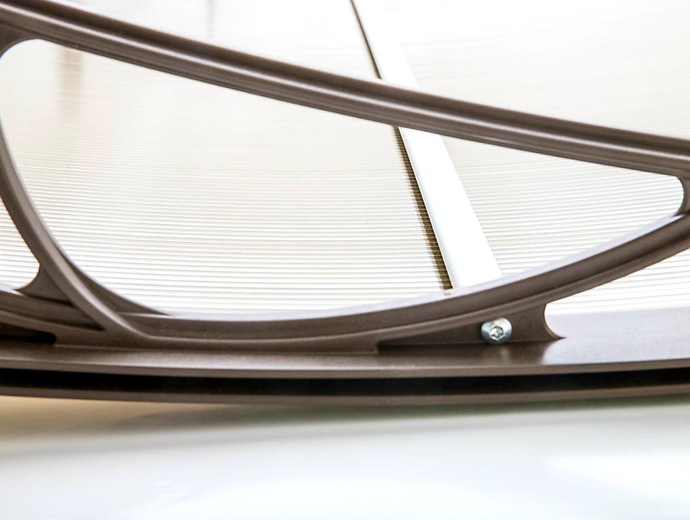 Vchodová stříška Valtellina hnědá/bronz, rozměr 120 x 82 cm, je osazena polykarbonátem Guttagliss Dual Box 6 mm. Vchodová stříška Valtellina je oválná stříška nad vchodové dveře osazena polykarbonátem Guttagliss Dual Box 6 mm. Moderní vchodová stříška s výplní z polykarbonátu. Italská vchodová stříška nad vchodové dveře Valtellina je vyrobena z kvalitního dutinkového polykarbonátu Guttagliss Dual Box o šířce 6 mm. Zakončovací lišty jsou vyrobené z eloxovaného hliníku a konzole z pevnostního kopolymeru. Součástí dodávky jsou hmoždinky, šrouby a krytky. Doporučujeme dokoupit chemickou kotvící sadu. Vchodová stříška Valtellina je kvalitní evropský výrobek vyznačující se dlouhou životností a vysokou odolností proti krupobití. Snadná montáž stříšky ideálně ve dvou lidech. Vchodová stříška Valtellina je vhodná pro zastřešení vchodů, teras, výloh obchodů, balkonů a lodžií. Vchodová stříška Valtellina je dodávána rozložená a je jí třeba před osazením sestavit. Jednoduchá montáž svépomocí. Záruka 2 roky. Montážní návod vchodové stříšky Valtellina je ke stažení u tohoto produktu.